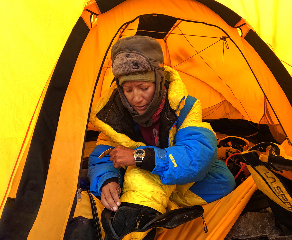 “When I received the prototype of the Ocean to Orbit Lhotse, I was delighted with its size and comfort. The time only function was very legible, and the fact that it runs on my hand movement meant that I never worried about its battery life. Timing in mountaineering is also very important. The weather plays a big part, so we need to keep track of time and accurately calculate each stage. We always need to push ourselves to reach each designated point in order to successfully complete a climb. During my summit to Lhotse, I was making the climb with many other mountaineers. Once they knew that I was wearing a watch, they would constantly ask me for the time as their mobile phones were switched off. We were also able to save battery on the satellite phone by not using it to contact base camp to ask for the time. The Lhotse was always on my wrist, being 100m water resistant I even wore it when I took a dip in the Khumbu Ice fall when I returned.”